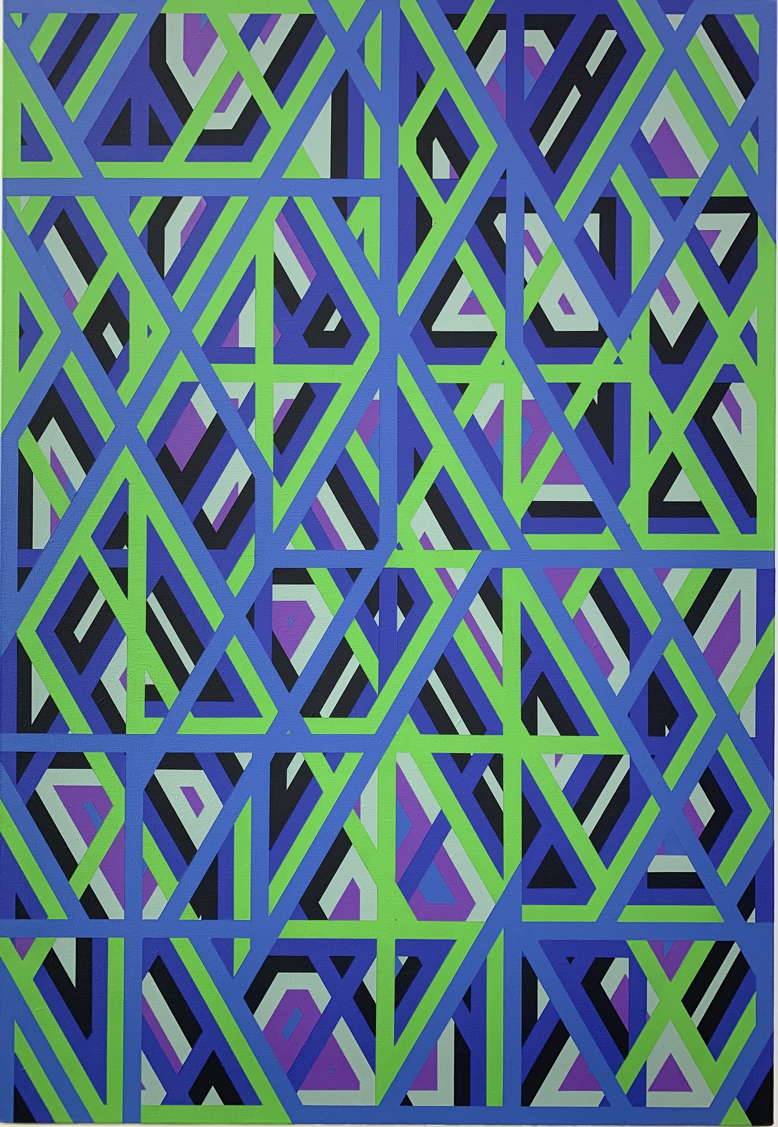 "회화는 캔버스와 같은 빈 공간 위에 쌓여가는 방식으로 대상을 표현하는 데 반해, 저는 하나의 색면을 만들어 두고 조각의 덩어리처럼 깎아 들어가면서 공간을 만드는, 일종의 네거티브 방식에 가까워요. 마스킹 테이프를 연속적으로 붙이는 과정을 거쳐 작업이 완성되면 비로서 '없음'의 상태가 됩니다. 그래서 작업이 끝난 뒤 테이프를 떼는 것은 가장 긴장되는 과정입니다. 떼어내기 전까지는 결과를 알 수 없기 때문이죠."